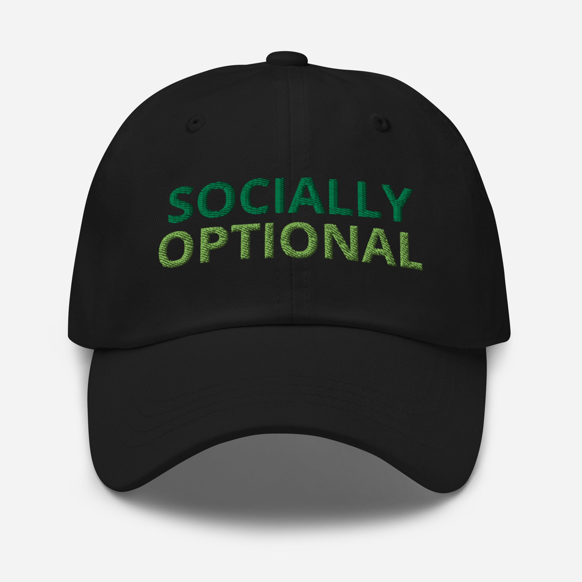 SOCIALLY OPTIONAL.😏 • 100% chino cotton twill• Unstructured, 6-panel, low-profile• 6 embroidered eyelets• 3 ⅛” (7.6 cm) crown• Adjustable strap... Read more